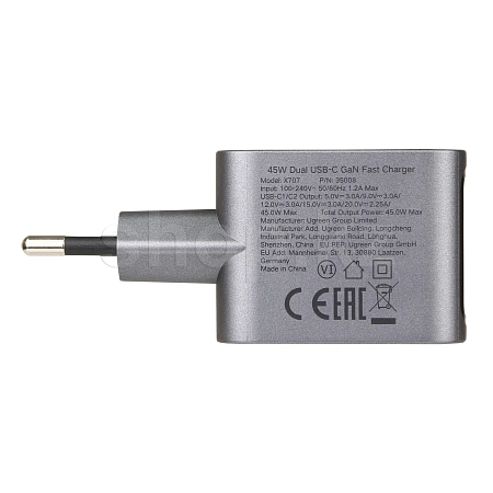 Зарядное устройство Ugreen X707 Nexode Pro поддерживает флэш-зарядку мощностью до 45 Вт, что позволяет заряжать совместимые устройства с молниеносной скоростью.