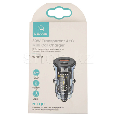 Автомобильное зарядное устройство Usams US-CC164 обеспечивает быструю и качественную зарядку 30 Вт.