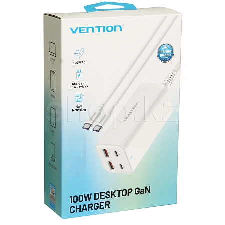 Зарядный блок Vention FBSWG-EU обладает выдающейся мощностью 100 Вт и удивительно компактен. Это идеальное решение для тех, кто ценит мощность и экономию пространства.