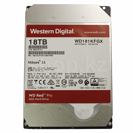 HDD 18 TB Western Digital (WD181KFGX), 3.5", 512 MB, SATA III, Red Pro атқыл дискі