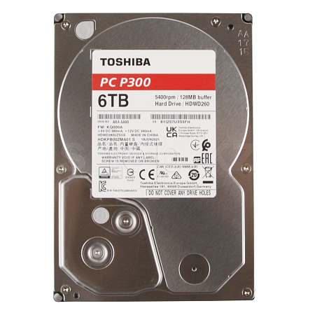 HDD 6 TB Toshiba P300 (HDWD260UZSVA), 3.5", 128 MB, SATA III қатқыл дискі