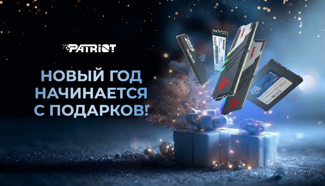 С 9 по 24 декабря 2025 года покупайте продукцию Patriot и автоматически становитесь участником розыгрыша пяти призов! Покупка — ваш возможный билет к удаче.