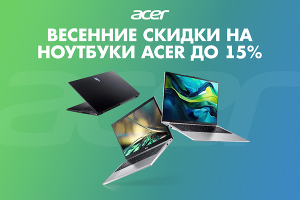 ACER ноутбуктары көктемгі бағамен-15%-ға дейін жеңілдіктер