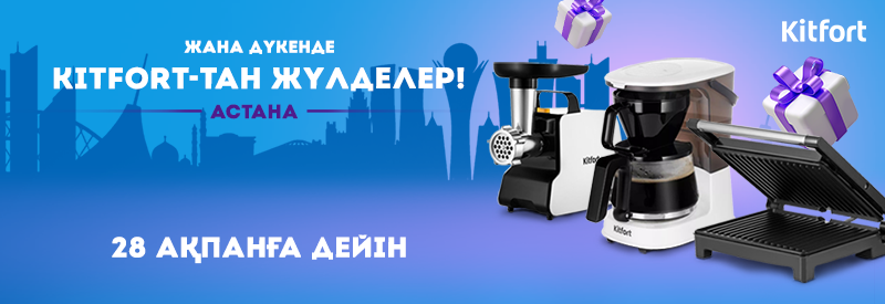 C 6 по 28 февраля 2026 года покупайте технику Kitfort на сумму от 20 000 ₸ в нашем новом магазине по адресу: г. Астана, пр. Бауыржана Момышулы, 16, ЖК «Восток», — и становитесь участником розыгрыша призов!