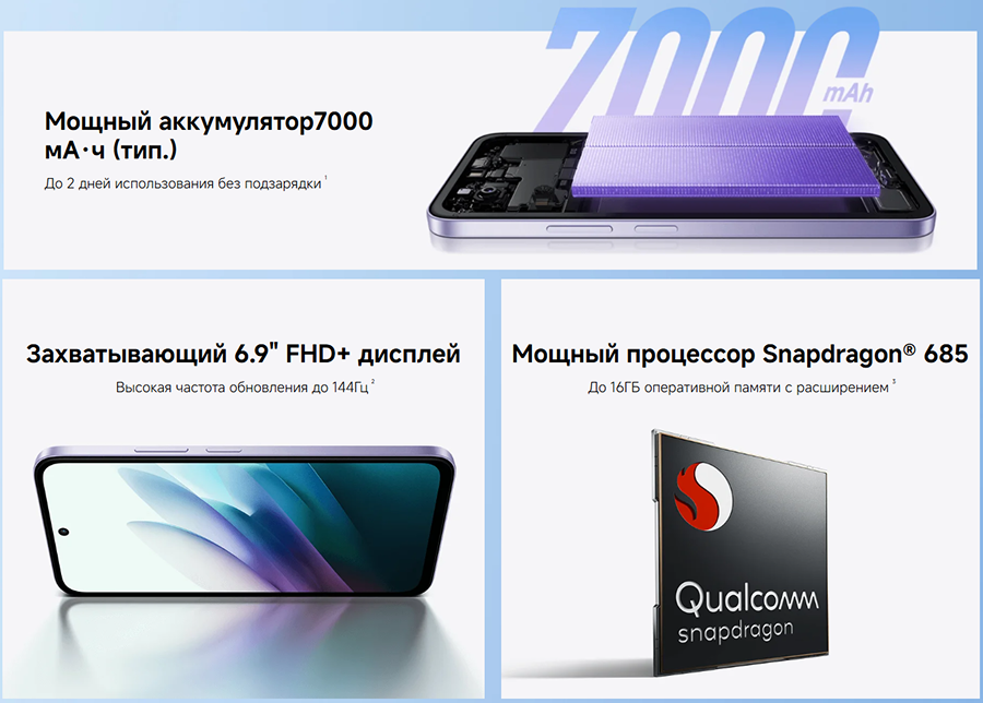 - Большой экран «кинематографического» формата: 6,9" FHD+.