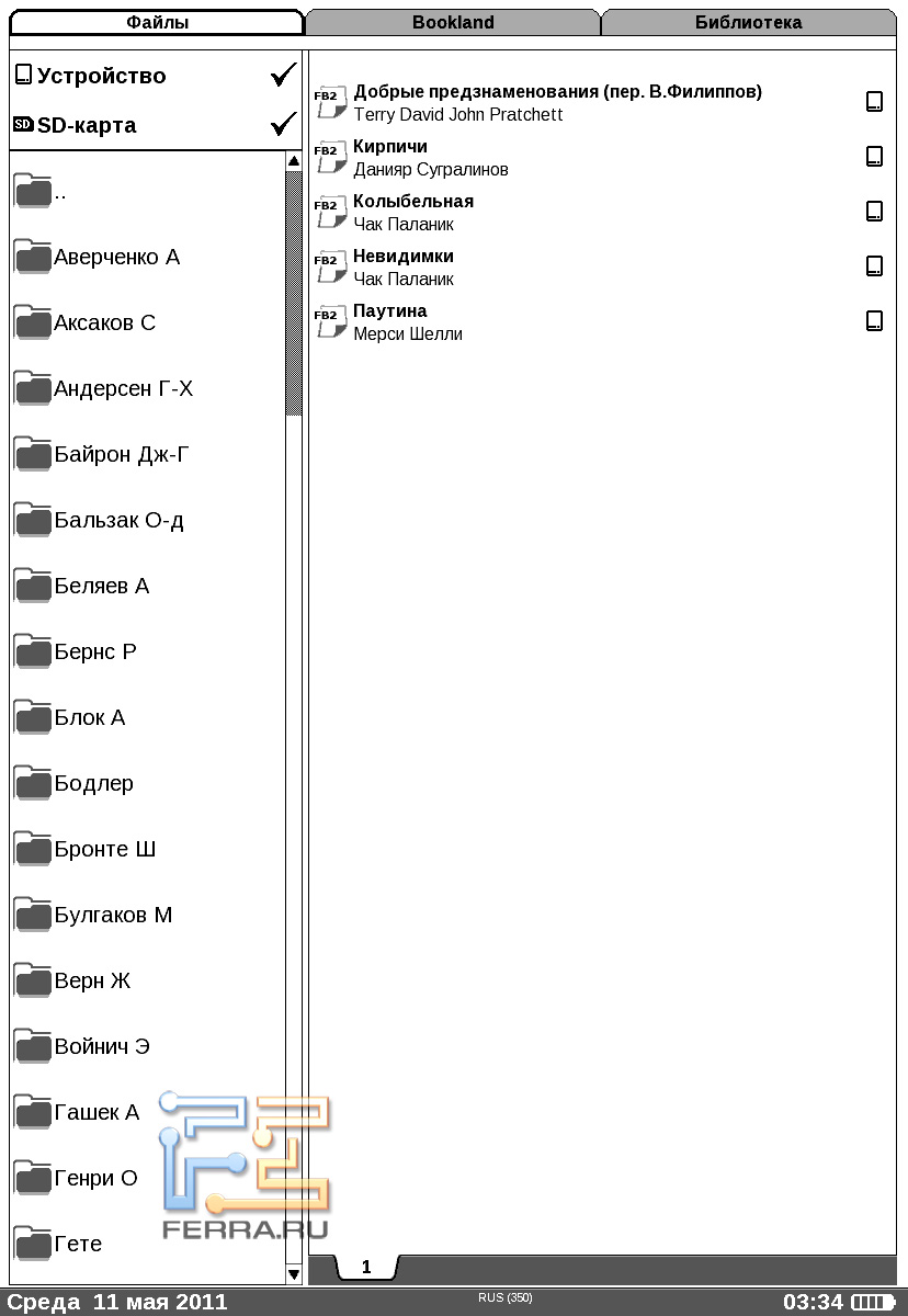 Интерфейс же самого магазина, его книжных полок пока что далёк от идеала. Есть основная информация (автор, издательство, ISBN), фото обложки и краткая аннотация. А вот отзывов и возможности прочесть перед покупкой хотя бы пару страниц нет. Для доступа в Bookland с ридера используется встроенный браузер. Кстати, запустить его отдельно на PocketBook Pro 902 невозможно, хотя в модели Pro 602 он присутствовал в списке приложений.