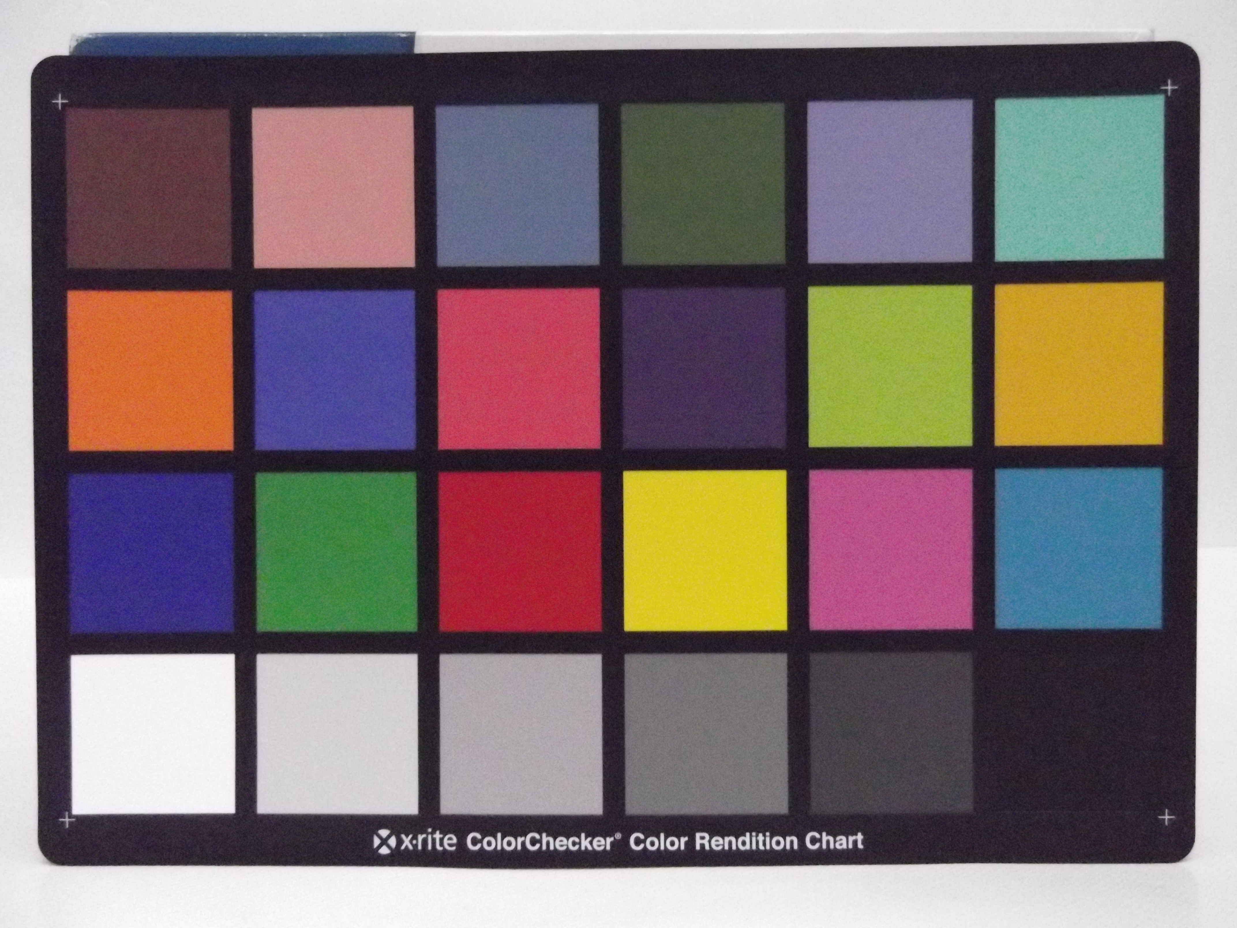 Также с чувствительностью от 100 до 1600 единиц была сфотографирована тестовая таблица Munsell ColorChecker. На снимке, приведённом ниже, зелёными квадратами обозначены области кроп-фрагментов.