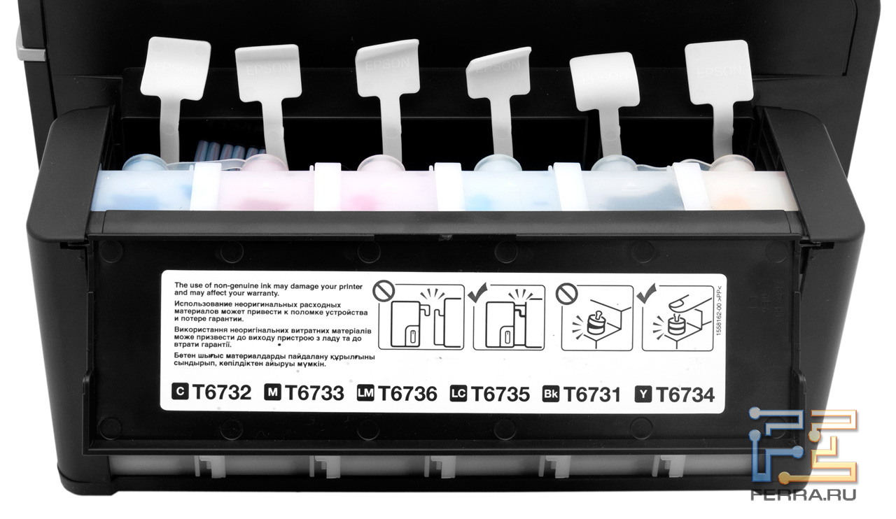 Блок с 70-мл резервуарами выполнен очень аккуратно и не вызывает сложностей с заправкой чернилами