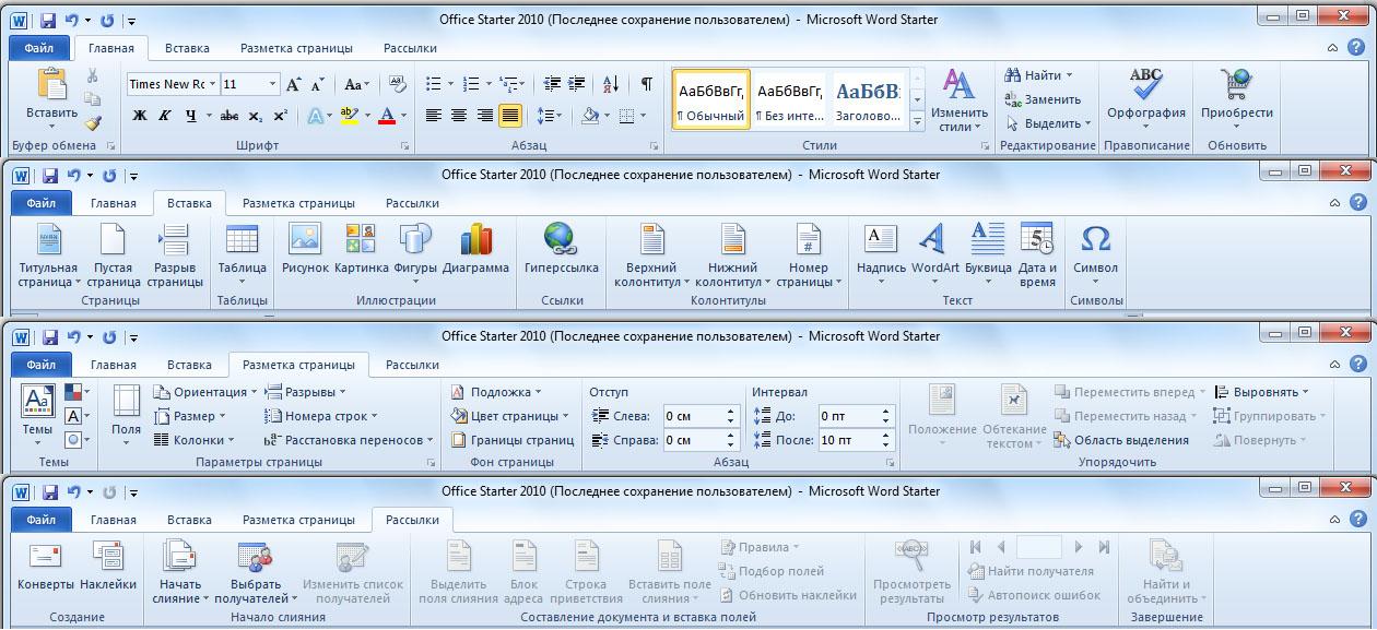 По внешнему виду приложения напоминают Office 2007. Вместо традиционных меню и панелей инструментов - командная лента (Ribbon). По мнению Microsoft, использование ленты позволяет сделать доступ к командам более простым и удобным.