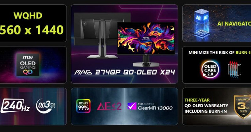 Компания MSI представила новый игровой монитор MAG 274QP QD-OLED X24, который стал обновлённой и улучшенной версией модели MAG 272QP. Новинка получила панель QD-OLED третьего поколения от Samsung, поддержку частоты 240 Гц, точную цветопередачу и ультрабыстрый отклик что делает её привлекательным вариантом в среднем ценовом сегменте OLED-мониторов.