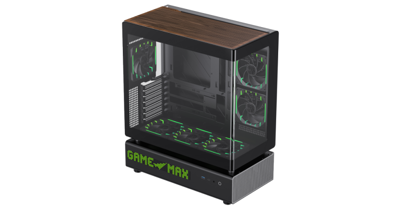 GameMax включила в комплект два взаимозаменяемых магнитных верхних панели: стандартную вентилируемую панель для максимального воздушного потока и панель с деревянной отделкой. Это позволяет пользователям выбирать между эффективностью охлаждения и эстетическим акцентом, который подходит к различным интерьерным решениям.
