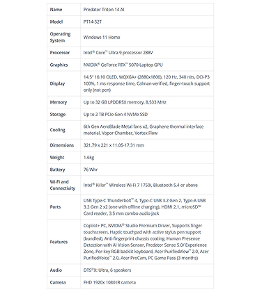 Acer представила новую модель Predator Triton 14 AI, которая сразу привлекла внимание своей тонкостью, мощностью и интересными нововведениями. Этот ноутбук сочетает компактный дизайн с серьёзными игровыми характеристиками  и может стать актуальным решением для геймеров и тех, кому важна производительность на ходу.