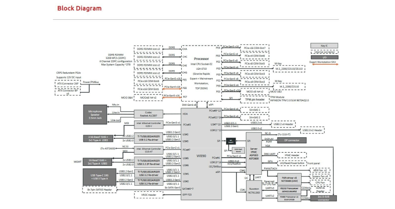 По сравнению с текущим поколением W790, платформа W890 обеспечивает улучшение производительности подсистемы памяти и обеспечивает большую гибкость в конфигурации.
