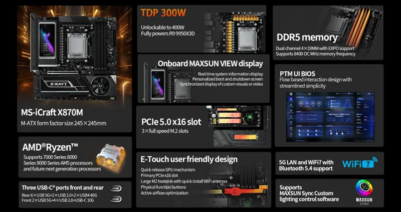 Компания Maxsun представила новую материнскую плату iCraft X870M  современное решение для тех, кто хочет собрать мощный и компактный компьютер на базе AMD Ryzen. Плата сочетает удобный форм-фактор, поддержку новейших технологий и запас мощности «на будущее»