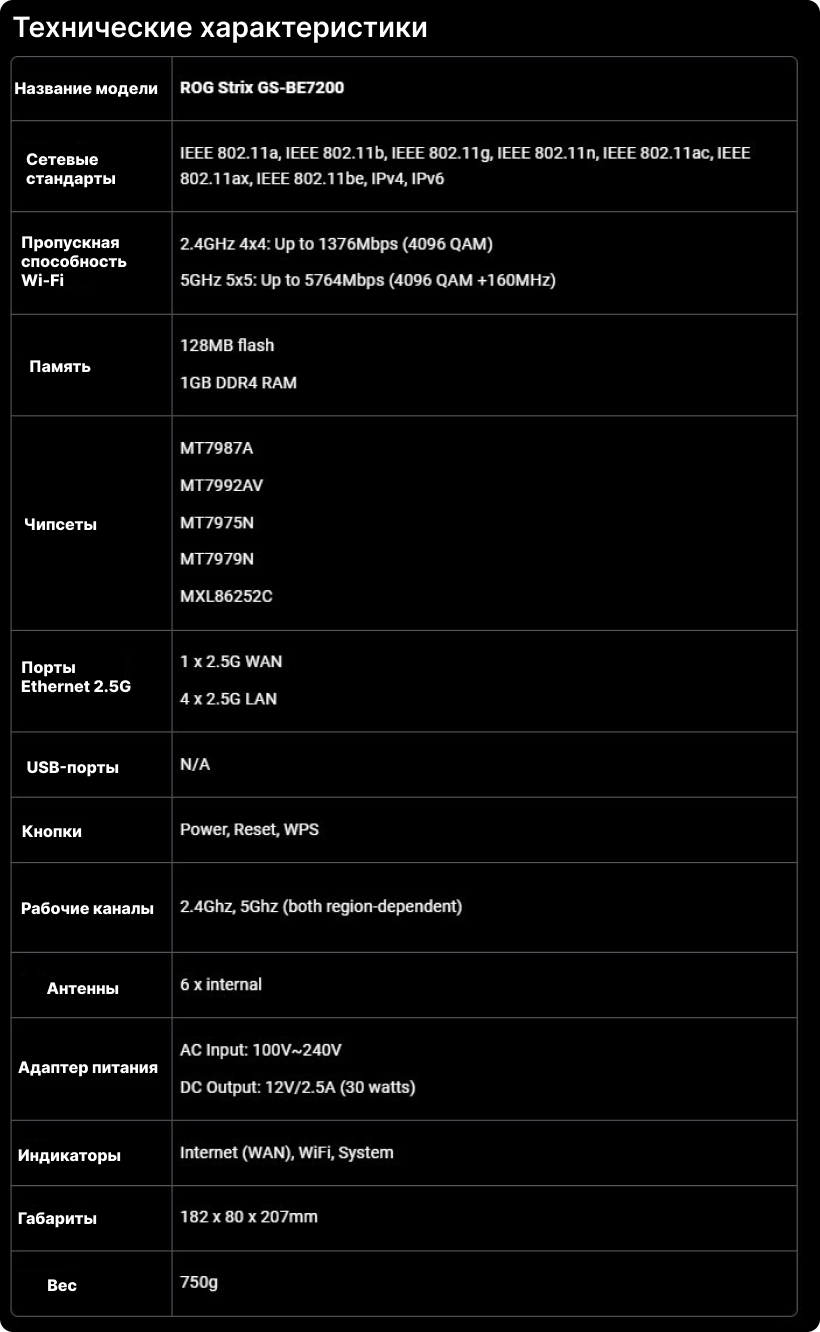 Компания ASUS Republic of Gamers (ROG) сегодня анонсировала ROG Strix GS-BE7200, игровой двухдиапазонный маршрутизатор Wi-Fi 7 (802.11be) нового поколения, разработанный для игроков, которым требуется быстрое, стабильное и интеллектуально оптимизированное подключение. Благодаря технологии Multi-Link Operation (MLO), сверхшироким каналам 160 МГц и модуляции 4K-QAM, GS-BE7200 максимально повышает эффективность и общую пропускную способность беспроводной сети, обеспечивая скорость передачи данных до 7200 Мбит/с для плавной онлайн-игры, потоковой передачи с низкой задержкой и высокоскоростной передачи данных — даже в условиях высокой загруженности сети.