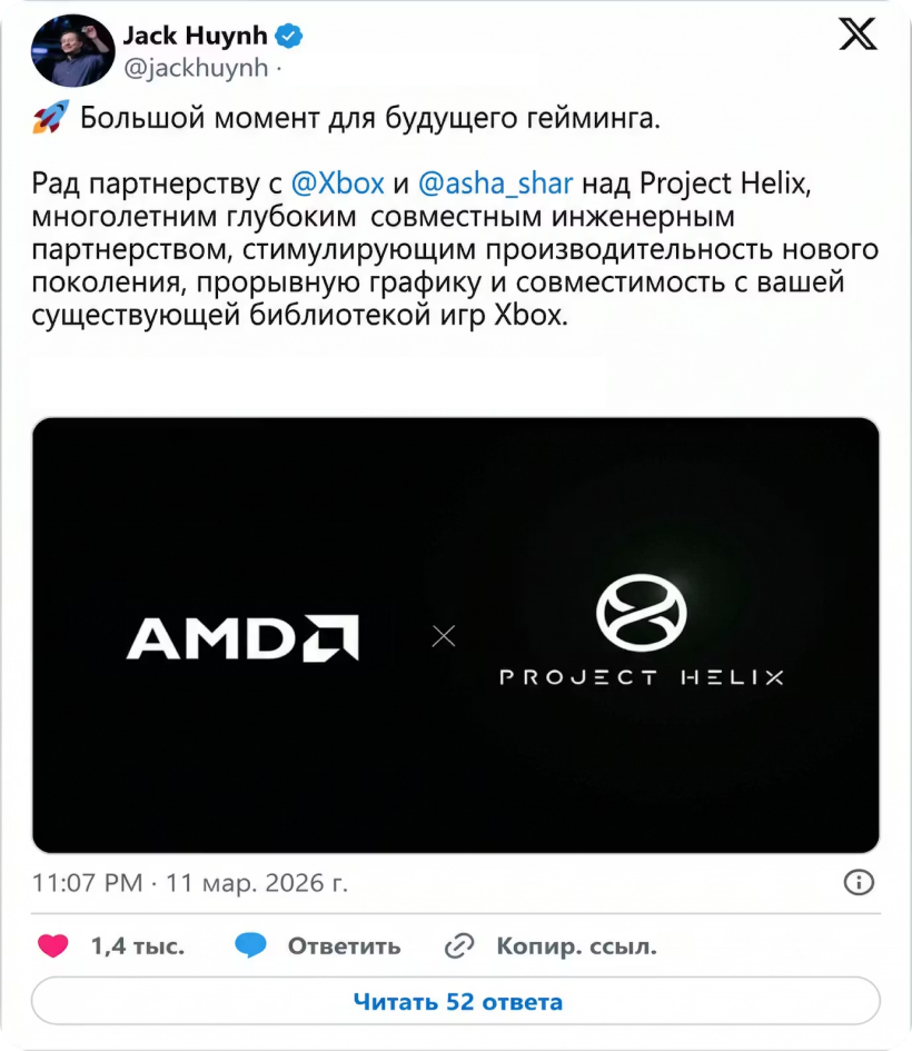 Фокус на технологиях апскейлинга в последнее время продемонстрировал огромный прогресс как со стороны NVIDIA, так и AMD, и на GDC этого года мы увидели демонстрацию возможностей DLSS 4.5 в сочетании с режимом MFG 6X. И теперь старший вице-президент и генеральный менеджер по компьютерной графике AMD Джек Хьюн раскрыл роль FSR в Project Helix от Microsoft, где, по его словам, технология будет «нативно оптимизирована» для предстоящего оборудования Xbox и будет стимулировать производительность устройства.