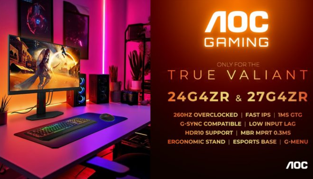 AOC представляет 24- и 27-дюймовые Fast IPS игровые мониторы с частотой 260 Гц и поддержкой NVIDIA G-SYNC